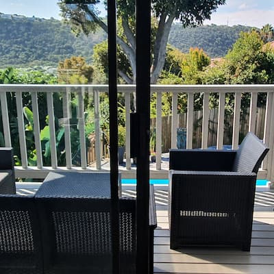 Valley Retreat Studio Apartment, hosted by Annelie and Colin, is an upmarket studio apartment, situated on a residential property where they reside. This tastefully furnished studio apartment is in the Upper Robberg area of Plettenberg Bay overlooking the beautiful Piesang Valley filled with tropical vegetation surrounded by age-old hills and cliffs.